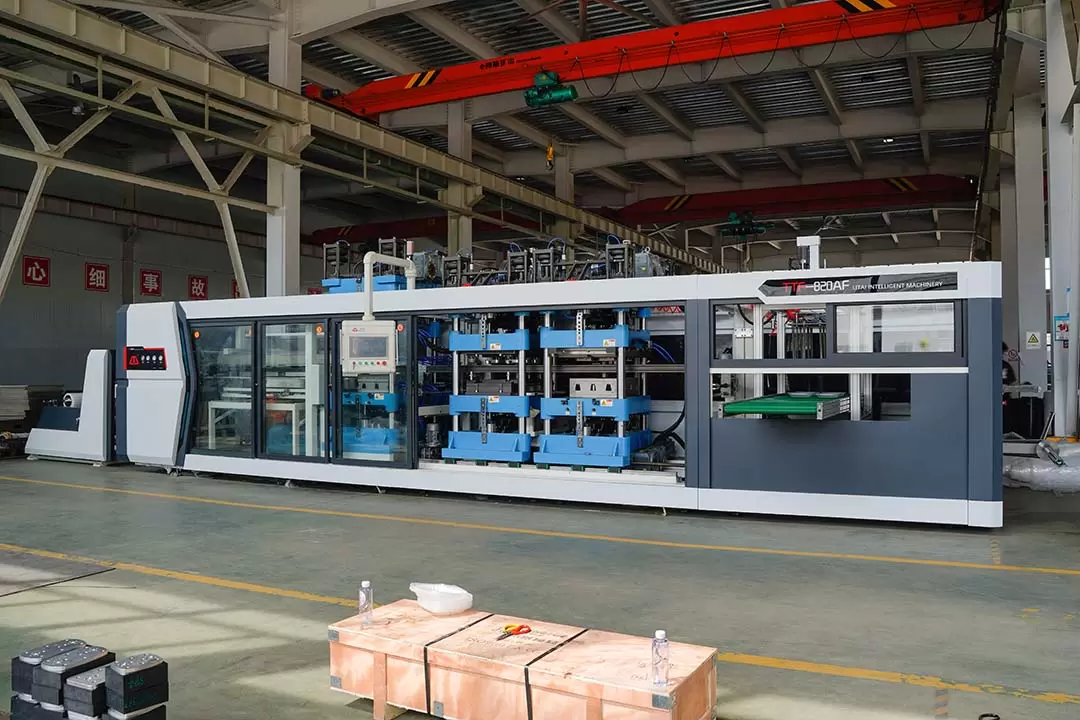 四工位塑料热成型机凭借其卓越的多工位同步运行、高效的生产能力、精准的控制技术以及广泛的材料适应性,已成为各行各业不可或缺的生产设备。无论面对大规模的生产需求,还是小批量的定制化订单,四工位塑料热成型机都能提供卓越的性能和灵活的解决方案,帮助企业提高生产效率、降低生产成本,获得更高的市场竞争力。