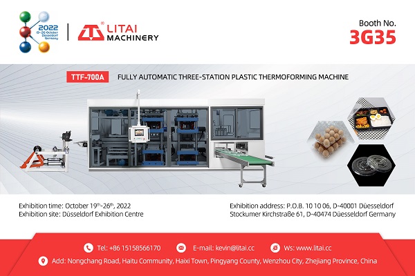 此次,杭州世腾机械有限公司应邀参加德国杜塞尔多夫“K时代”国际塑料橡胶展,LITAI此次展出的产品包括TTF-520A三工位热成型机、空压机、冷水机组、储气罐。