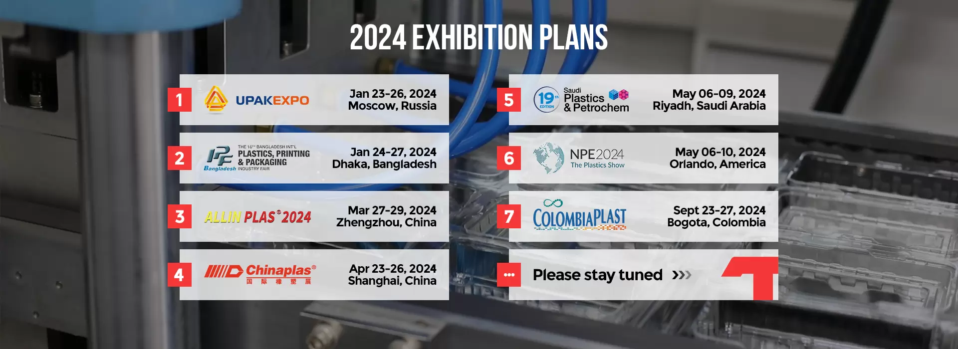 2023年即将结束,2023年年末,力泰机械已制定2024年的参展计划。基于我们往年的展会数据和全球市场定位布局,以及客户意向数据分析,我们计划明年增加海外参展商数量。具体计划如下: