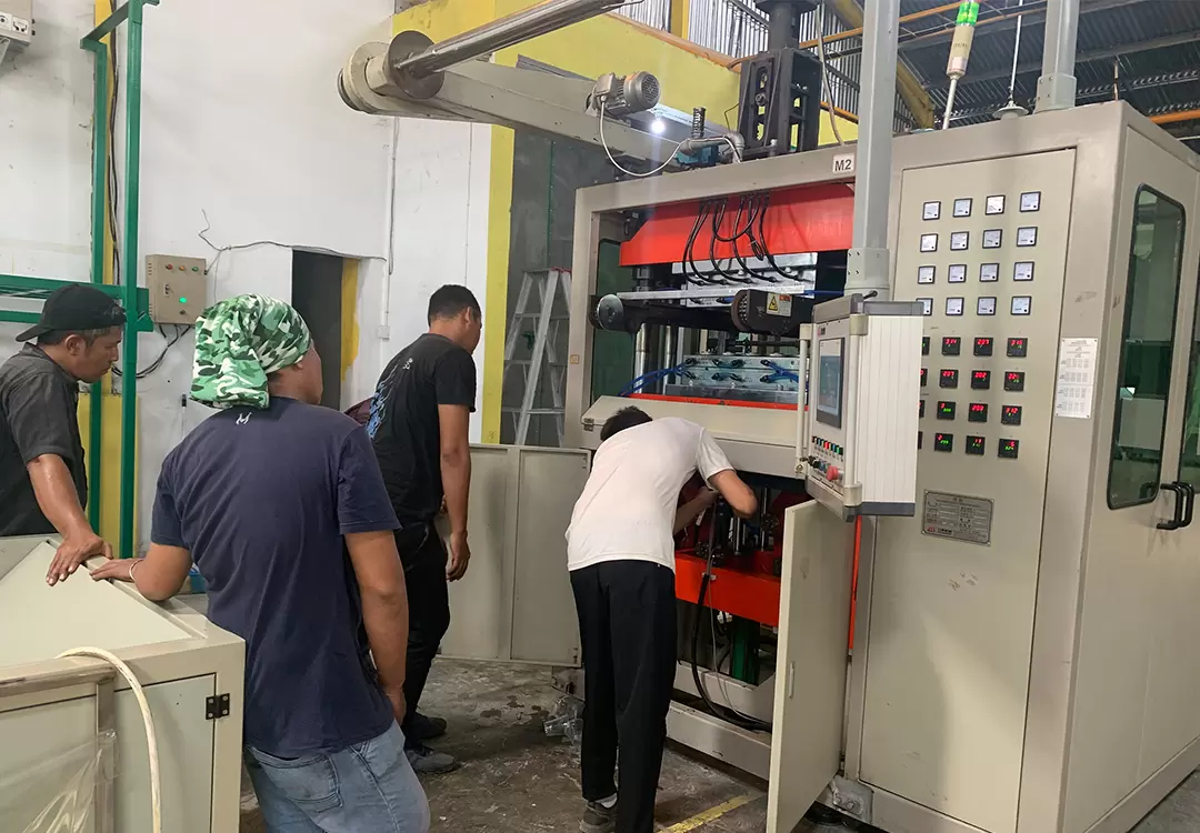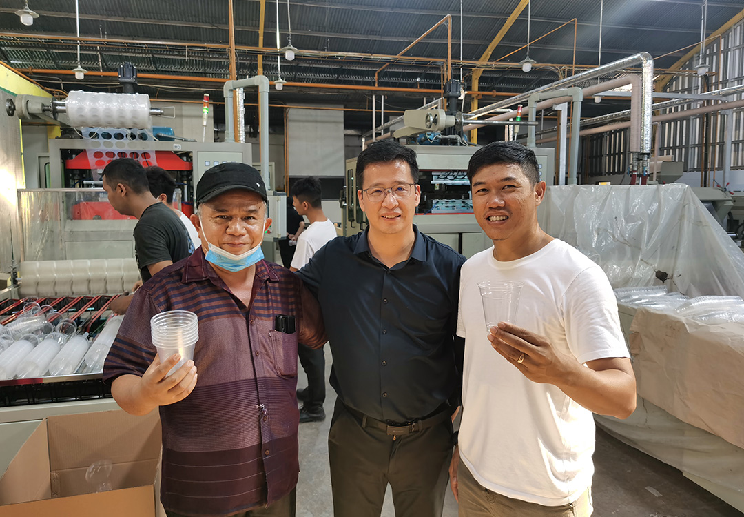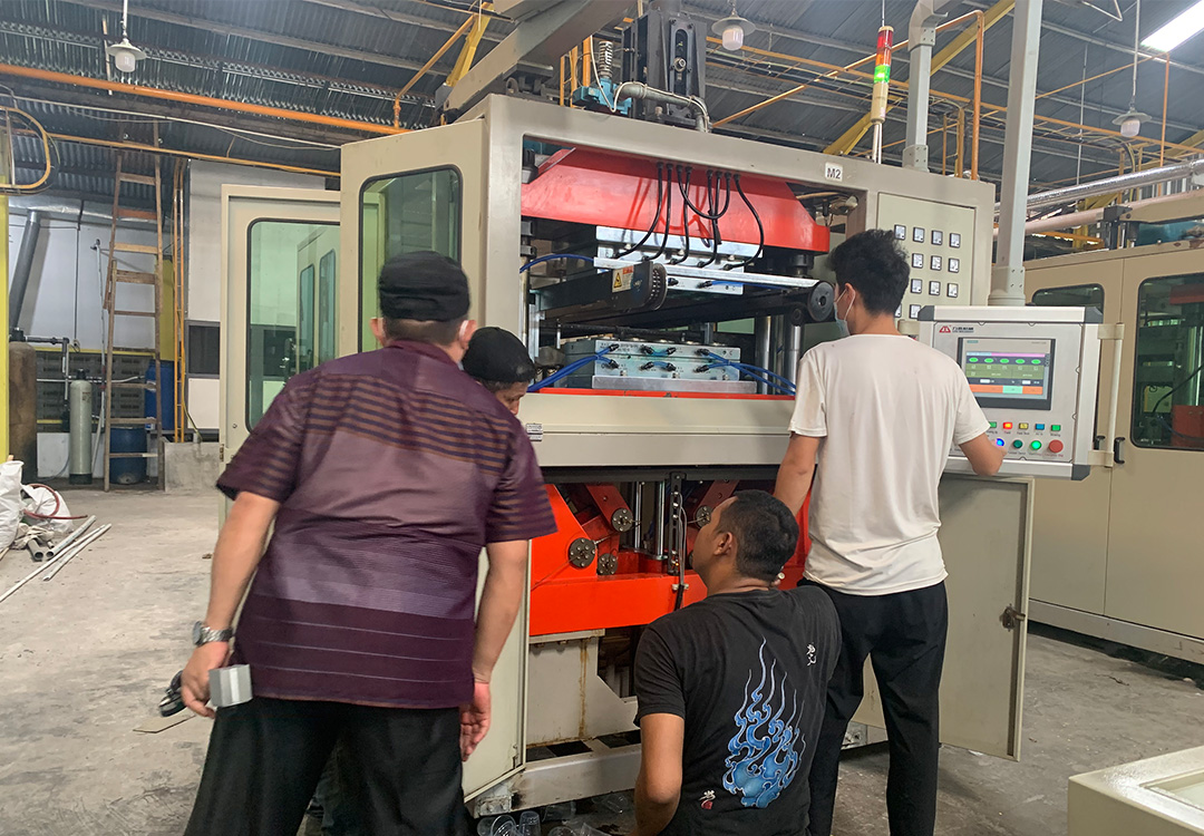 2023年8月初,我们团队前往印尼拜访老客户。这次我们团队带着设备调试工程师一起去了客户工厂,一是寻找塑料热成型机的代理商,二是再次维护印尼老客户。调整、维护客户的设备,并为客户解决日常生产中常见的故障和问题。客户热烈欢迎我们团队来访。工厂。该客户于2021年向我司购买了两台TQC-650B塑料杯机和两台TJ-750D PP PS塑料片材挤出机!我司于2021年!