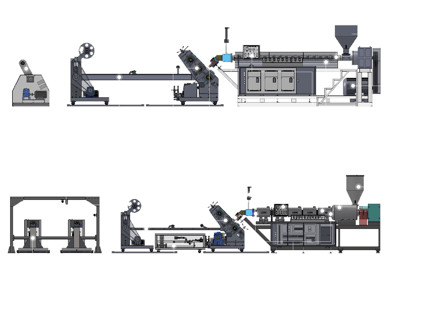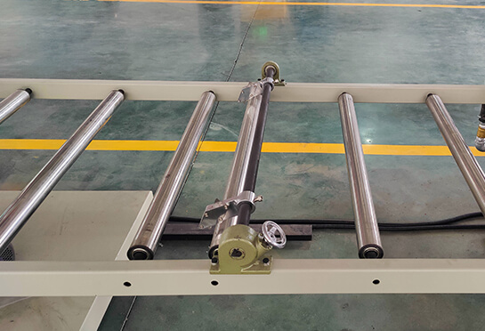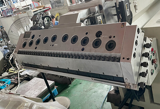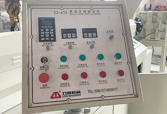 片材挤出机由挤出、压延、牵引、收卷等部分组成,主要零部件经特殊处理,耐磨、耐腐蚀、耐高温,质量优良。模头挤出通道阻力小,使片材厚薄均匀,三辊内藏螺旋槽,冷却效果好,用液压装置更换、安装换网器方便,不需停机。本机将PP/PS颗粒挤出成单色PP/PS片材,供塑料热成型机生产塑料制品,如杯子、保鲜盒、托盘、碟子、碗、盖子等。